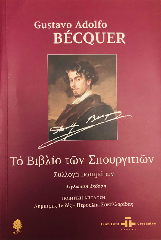 Tradución griega del Libro de los gorriones de Gustavo Adolfo Bécquer, presentada en versión bilingüe de Dimitris Intzes y Peroulis Sakellaridis.